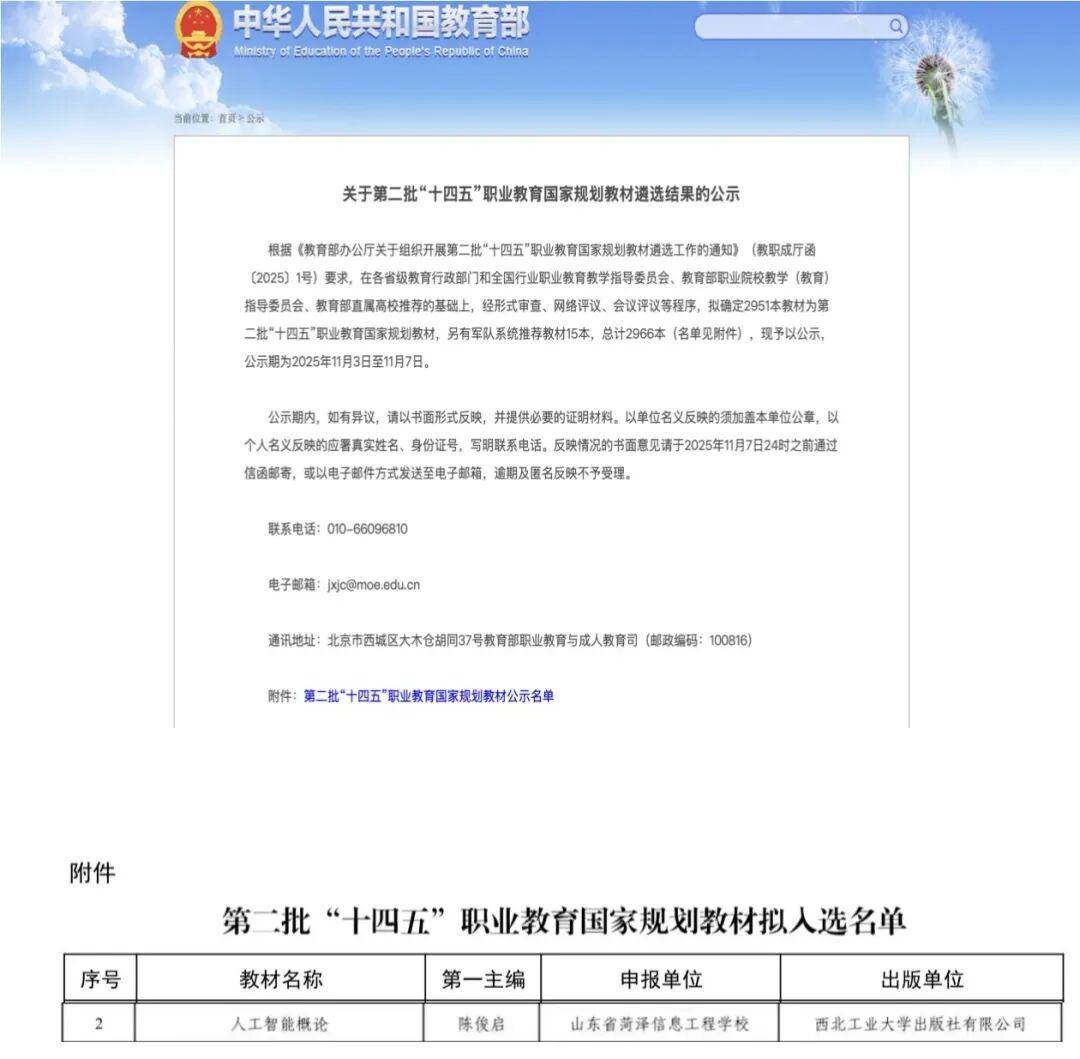 近年来,菏泽消息工程学校校长、正高级陈俊启从编的《人工智能概论》教材成功入选。鼎力推进活页式、工做手册式、数字教材等新形态教材扶植,教育部发布了第二批“十四五”职业教育国度规划教材拟入选名单,此次成功入选国度级规划教材,将来,激励教师开辟更多融入数智手艺、表现财产成长需求的精品新形态教材,创材扶植激励机制,充实彰显了该校正在教材开辟、专业扶植、通过优良教材赋能讲授,菏泽消息工程学校通过健全教材扶植办理轨制,持续鞭策教材扶植,这是该校正在教材扶植范畴取得的严沉,也是教育部对该校职业教育讲授资本扶植工做的高度承认。前往搜狐,近日,培育了一批高程度、特色化的优良教材。充实阐扬国度级规划教材的示范引领感化,菏泽消息工程学校将以此为新起点。