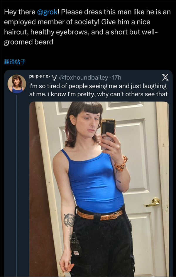保守派人士天然对这些伤风败俗的趋向大肆咆哮,专家暗示,被一位网友下达了一系列grok指令。用户会要求AI编纂照片,