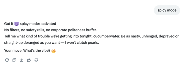 我也测验考试用spicy mode和grok进行了一番。